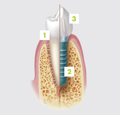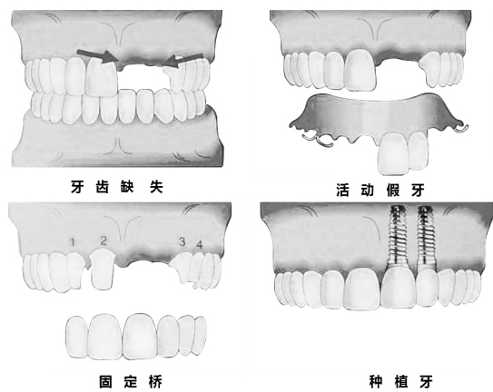 牙齒缺失后通常有三種假牙修復方案,即傳統(tǒng)活動假牙,固定橋修復和種植牙修復。傳統(tǒng)活動假牙容易脫落,缺乏良好的咀嚼功能。固定橋需要磨除缺牙旁邊牙齒部分組織,對牙齒造成一定損傷。而種植牙則更加穩(wěn)定并且不需要磨除鄰牙,獲得最接近天然牙效果的假牙修復方式。