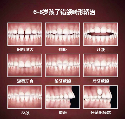 并非所有的小朋友都需要早期矯治,需要治療的特征性的錯(cuò)合畸形主要是右邊幾種: